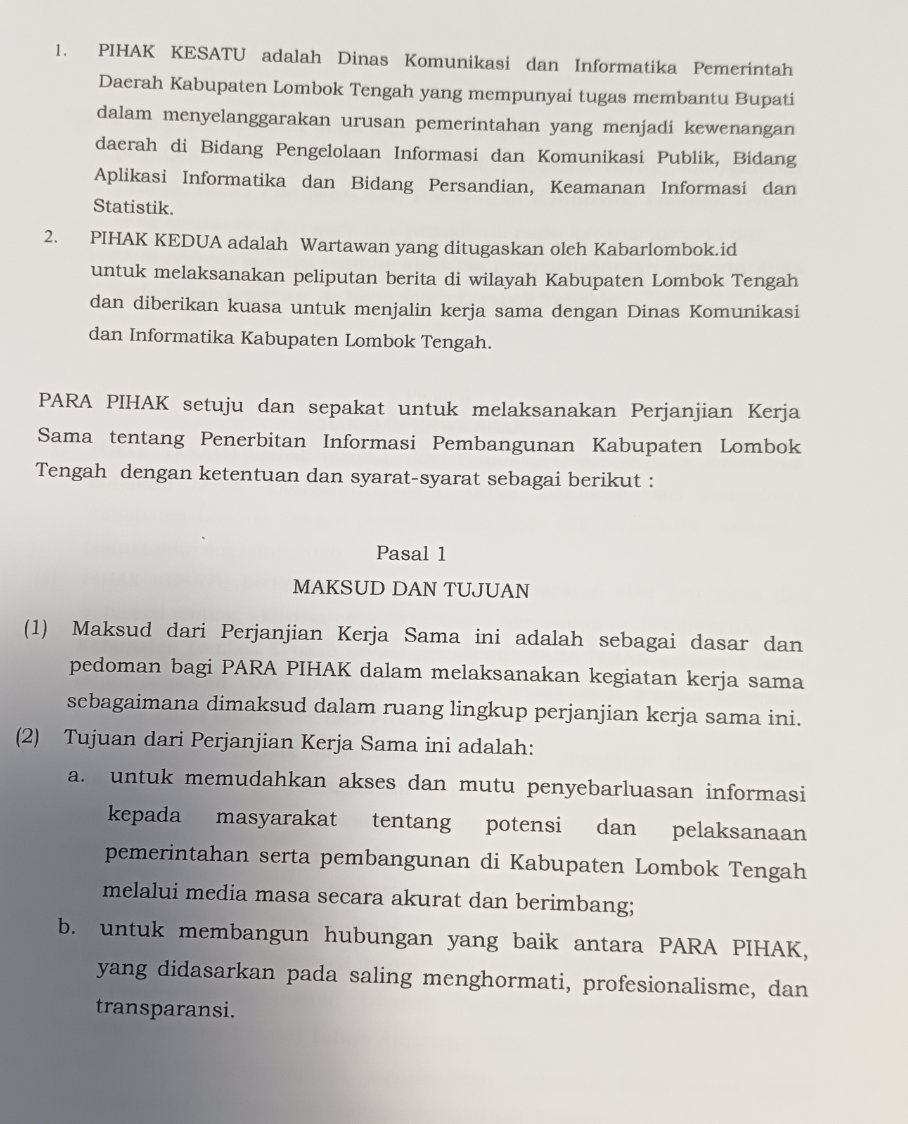 Kasus Hibah Majid Agung Dikorek, Sekda Loteng Diduga Perintahkan Putus Kerjasama Media  ?
